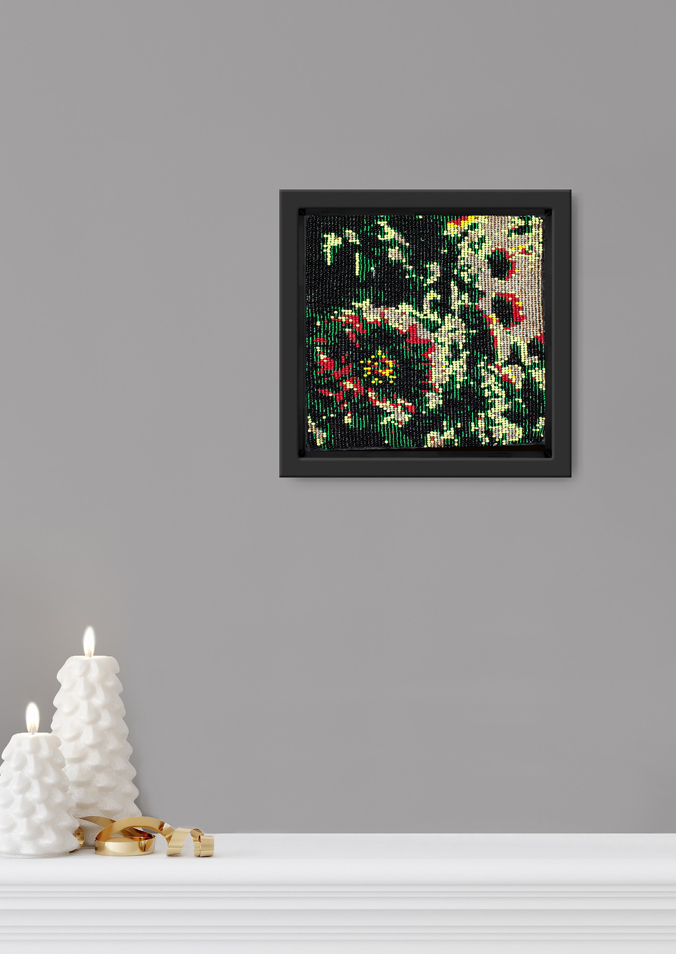 Material: Glass beads, cotton threads stitched onto cotton fabric