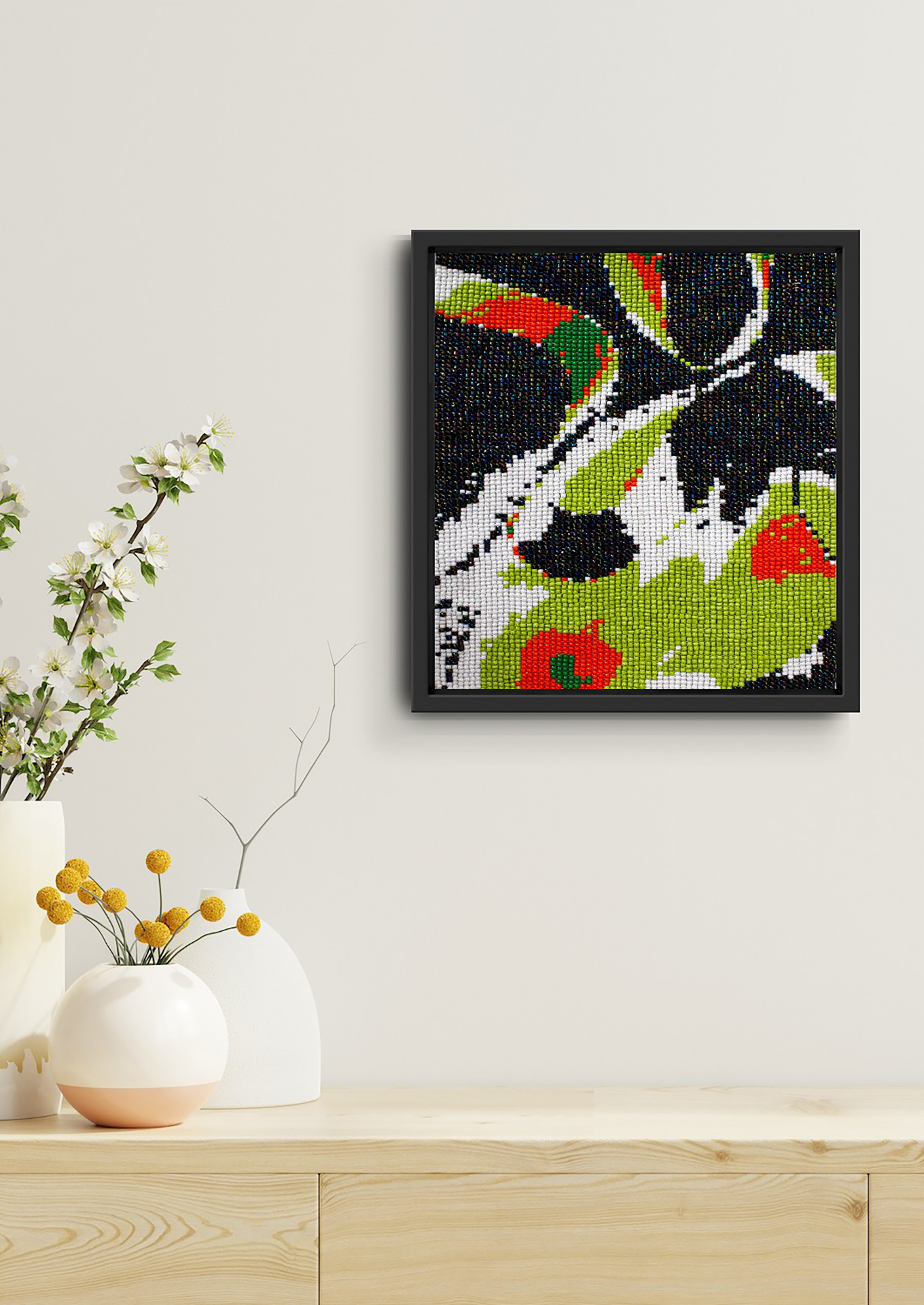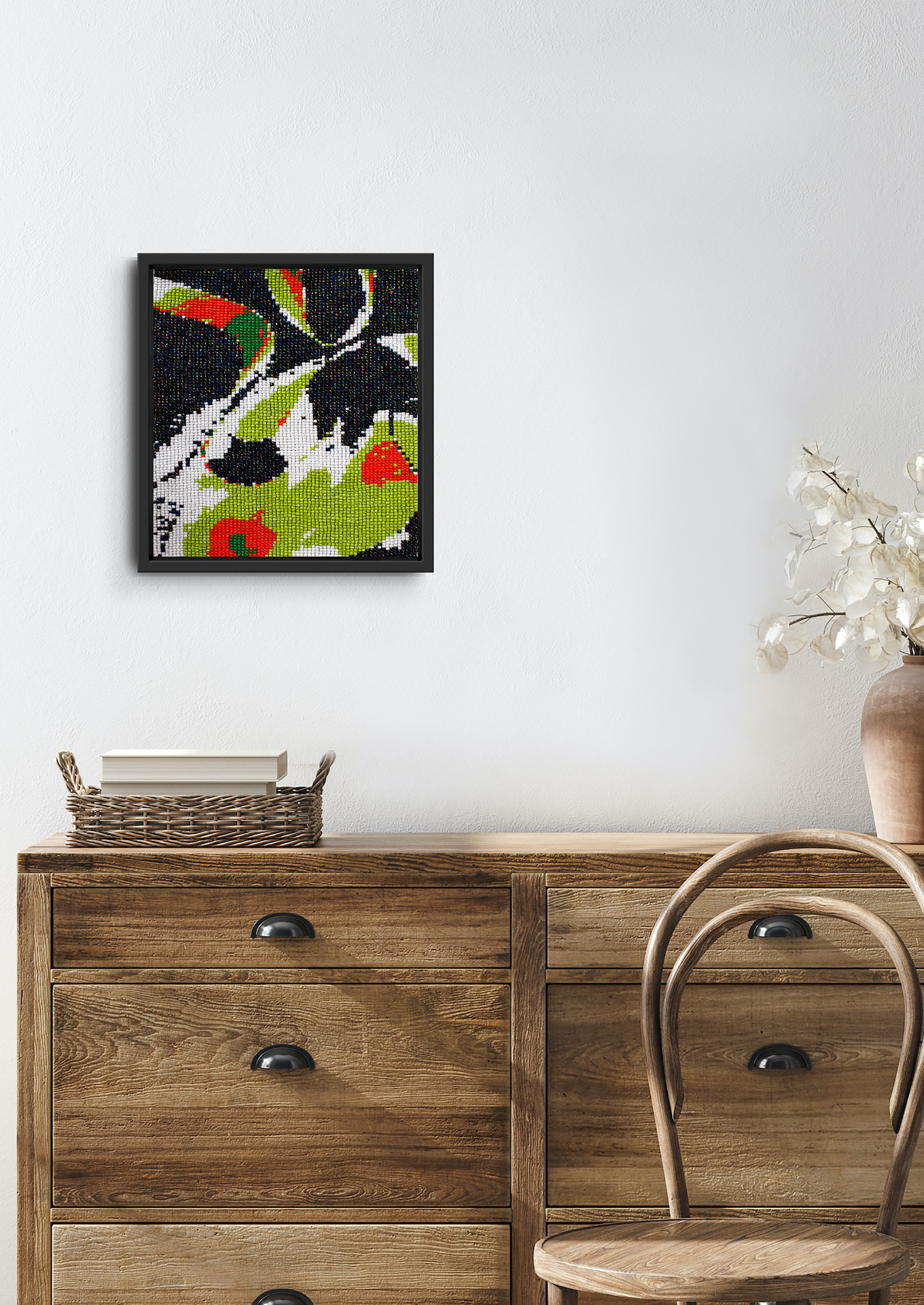 About the Collection: Handwoven on simple wooden looms by artisans in Bhavnagar, Gujarat, this piece embodies India’s fading bead-loom tradition. Tiny glass beads are woven into intricate patterns inspired by nature and geometry, preserving a craft once used to create torans that symbolized welcome and good fortune. Each artwork tells a quiet story — a meditative play of texture, light, and patience.