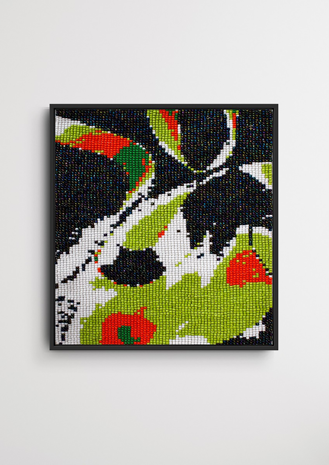 Material: Glass beads, cotton threads stitched onto cotton fabric