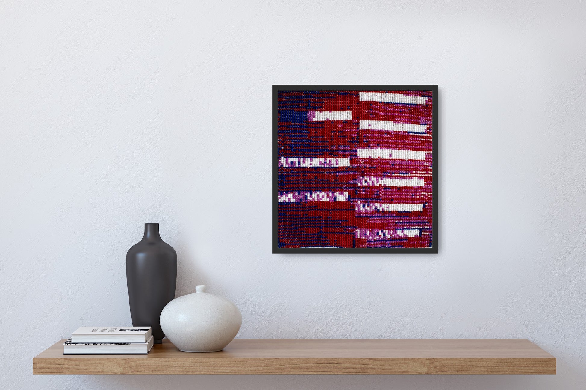 About the Collection: Handwoven on simple wooden looms by artisans in Bhavnagar, Gujarat, this piece embodies India’s fading bead-loom tradition. Tiny glass beads are woven into intricate patterns inspired by nature and geometry, preserving a craft once used to create torans that symbolized welcome and good fortune. Each artwork tells a quiet story — a meditative play of texture, light, and patience.