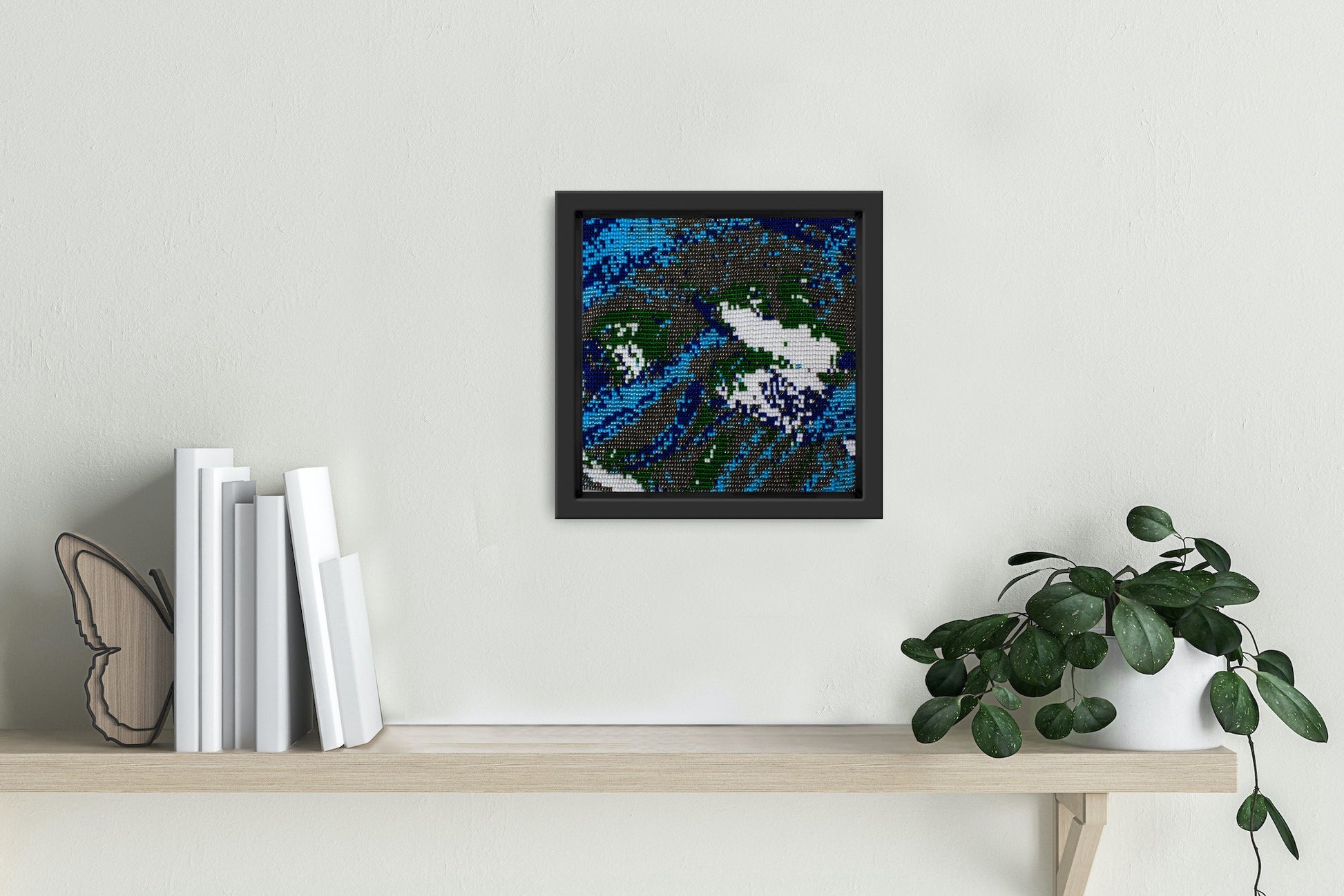 About the Collection: Handwoven on simple wooden looms by artisans in Bhavnagar, Gujarat, this piece embodies India’s fading bead-loom tradition. Tiny glass beads are woven into intricate patterns inspired by nature and geometry, preserving a craft once used to create torans that symbolized welcome and good fortune. Each artwork tells a quiet story — a meditative play of texture, light, and patience.