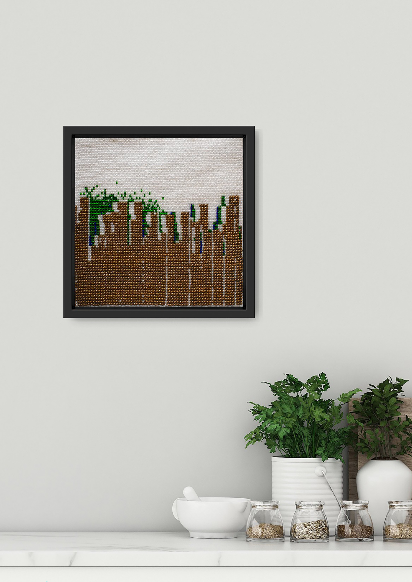 About the Collection: Handwoven on simple wooden looms by artisans in Bhavnagar, Gujarat, this piece embodies India’s fading bead-loom tradition. Tiny glass beads are woven into intricate patterns inspired by nature and geometry, preserving a craft once used to create torans that symbolized welcome and good fortune. Each artwork tells a quiet story — a meditative play of texture, light, and patience.