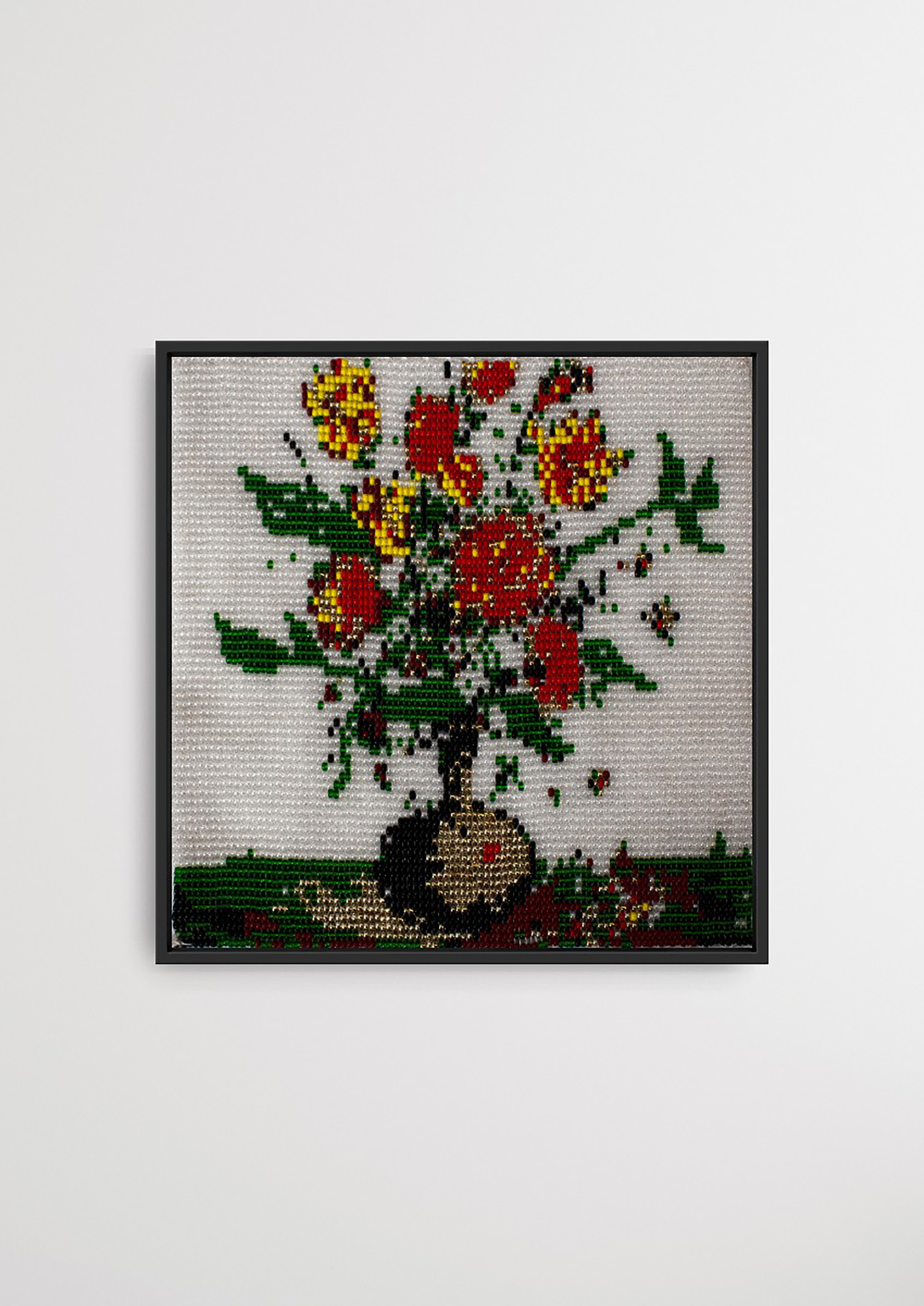 Material: Glass beads, cotton threads stitched onto cotton fabric