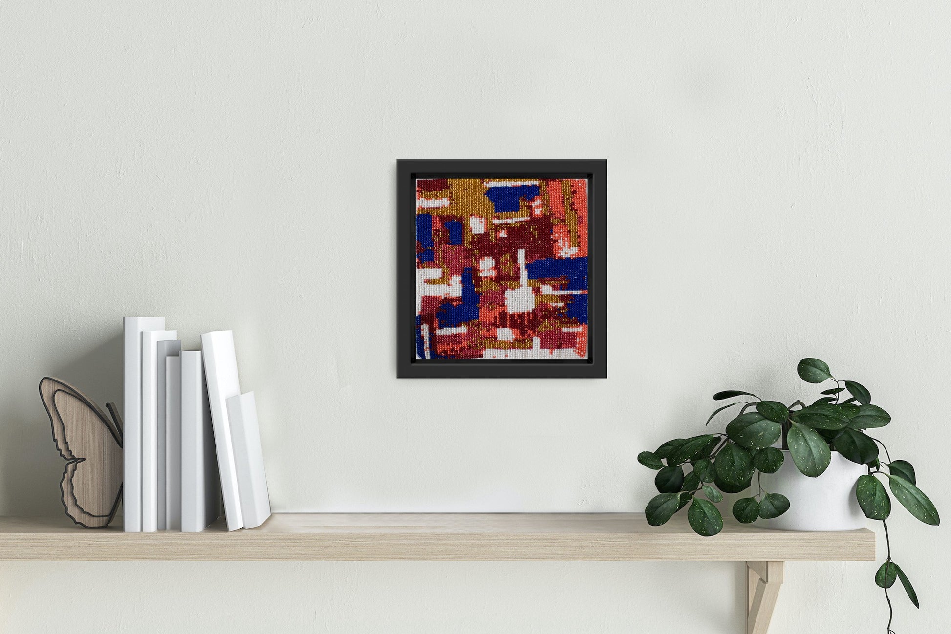 About the Collection: Handwoven on simple wooden looms by artisans in Bhavnagar, Gujarat, this piece embodies India’s fading bead-loom tradition. Tiny glass beads are woven into intricate patterns inspired by nature and geometry, preserving a craft once used to create torans that symbolized welcome and good fortune. Each artwork tells a quiet story — a meditative play of texture, light, and patience.