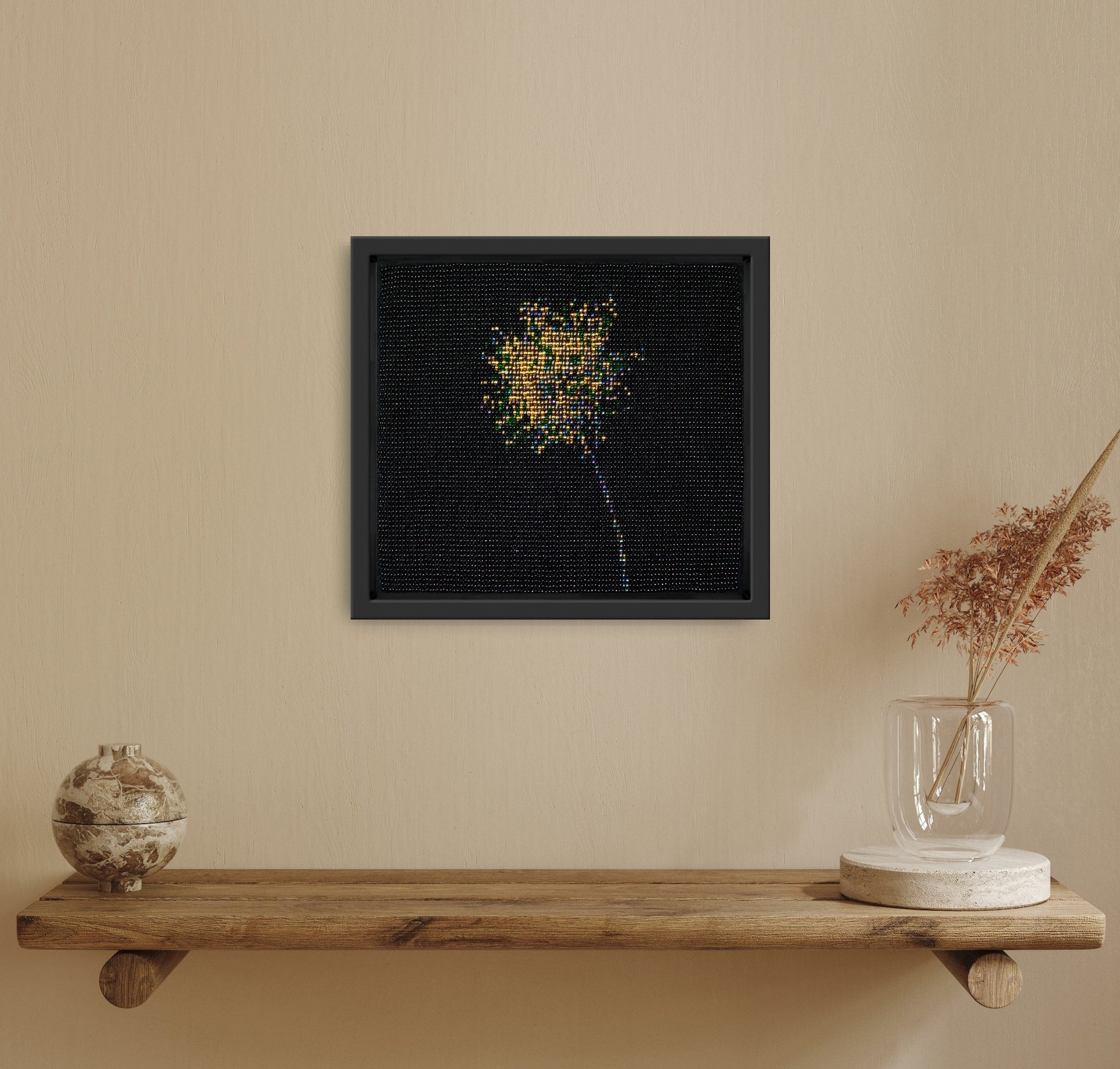 About the Collection: Handwoven on simple wooden looms by artisans in Bhavnagar, Gujarat, this piece embodies India’s fading bead-loom tradition. Tiny glass beads are woven into intricate patterns inspired by nature and geometry, preserving a craft once used to create torans that symbolized welcome and good fortune. Each artwork tells a quiet story — a meditative play of texture, light, and patience.