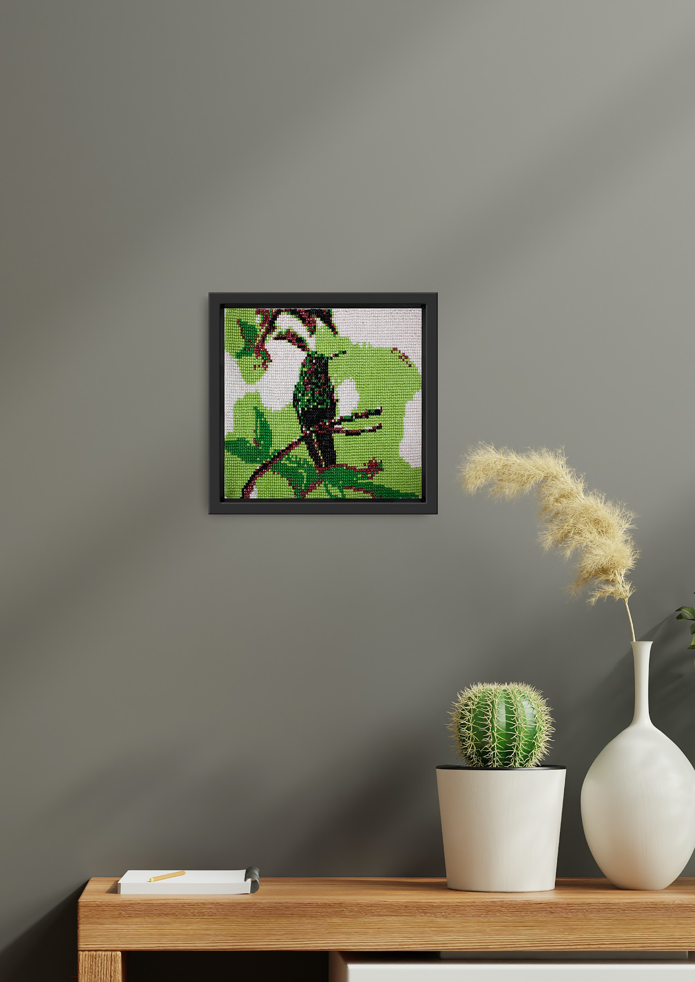 About the Collection: Handwoven on simple wooden looms by artisans in Bhavnagar, Gujarat, this piece embodies India’s fading bead-loom tradition. Tiny glass beads are woven into intricate patterns inspired by nature and geometry, preserving a craft once used to create torans that symbolized welcome and good fortune. Each artwork tells a quiet story — a meditative play of texture, light, and patience.